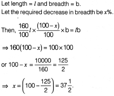 The length of a rectangle is increased by 60% By what percent would the width have to be decreased to maintain the same area?